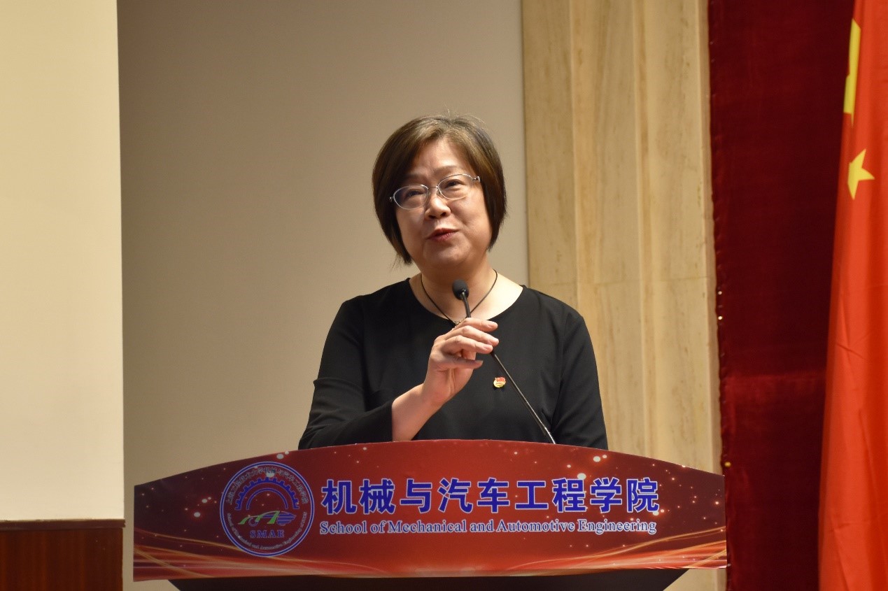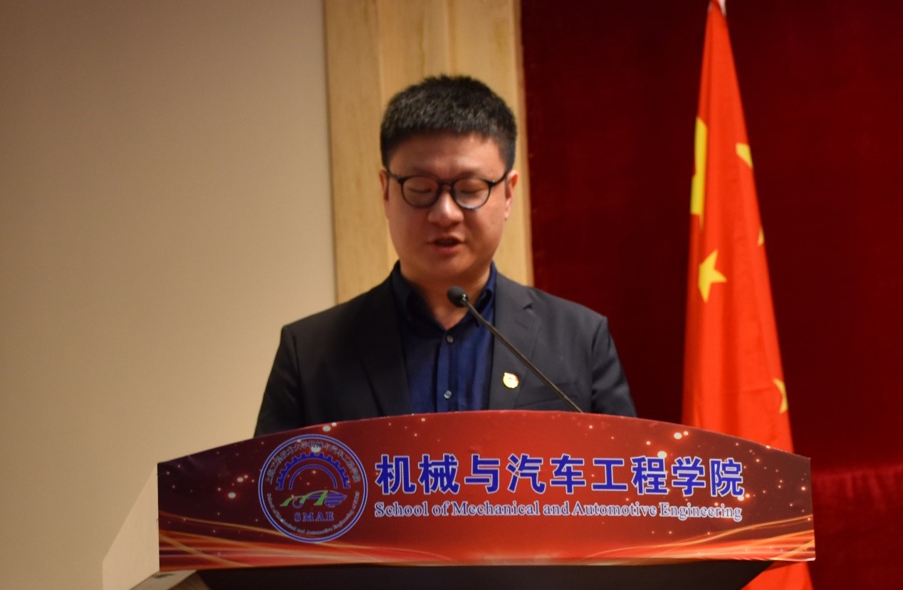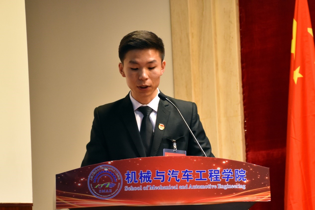 校团委书记王佳杰致辞,他代表校团委对机械与汽车工程学院共青团工作提三点希望:一是学院共青团工作要进一步加强团学组织建设,着力构建“一心双环”工作格局,提高工作吸引力、凝聚力和影响力,在团学工作中展现新作为;二是全体团员青年要牢固树立理想信念,在新时代体现新担当,面对新时代的召唤,要敢于肩负时代使命,勇挑时代重担;三是要不断推进团学工作创新,围绕学校学院中心工作,坚持立德树人,服务人才培养大局,开创团学工作新局面。