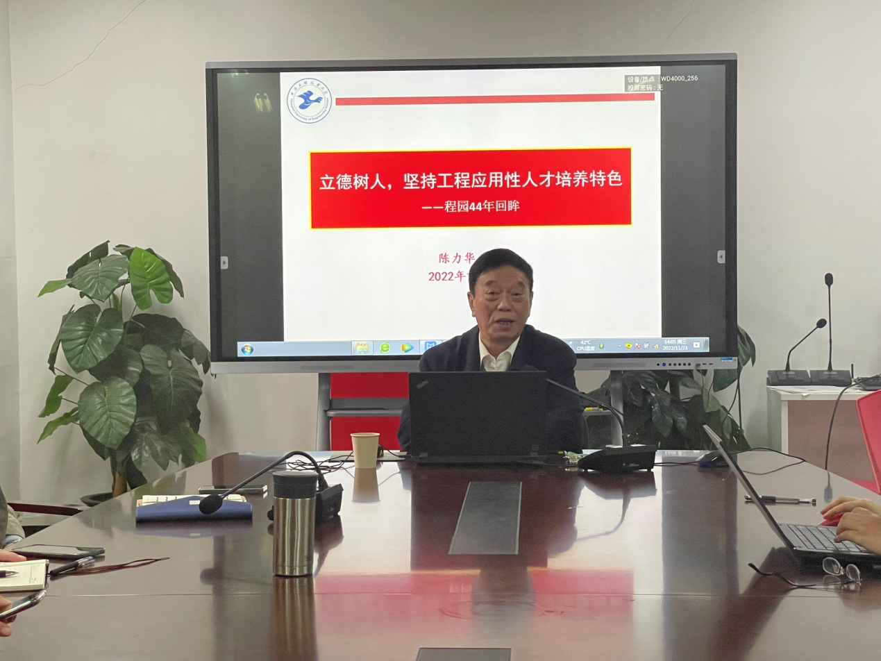 11月23日下午,上海工程技术大学督导组组长陈力华教授受邀为工程训练中心作了题为“立德树人,坚持工程应用性人才培养特色——程园44年回眸”的报告。中心教职工集体聆听了报告。本次报告由工程训练中心主任陈浩主持。