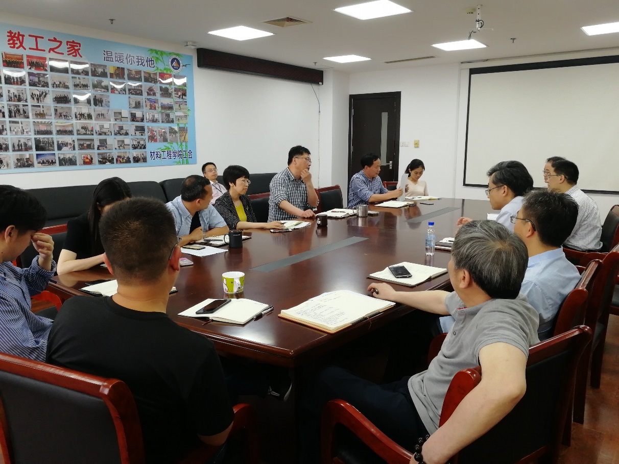 6月6日上午,材料工程学院在行政楼1612会议室召开一流学科建设暨博士点申报工作推进会。院党委书记于治水,院长周细应,副院长李军,张可敏,董万鹏,梅元媛,工会主席冷培榆以及各系主任,实验室主任,院办老师均出席会议,会议由院长周细应主持。