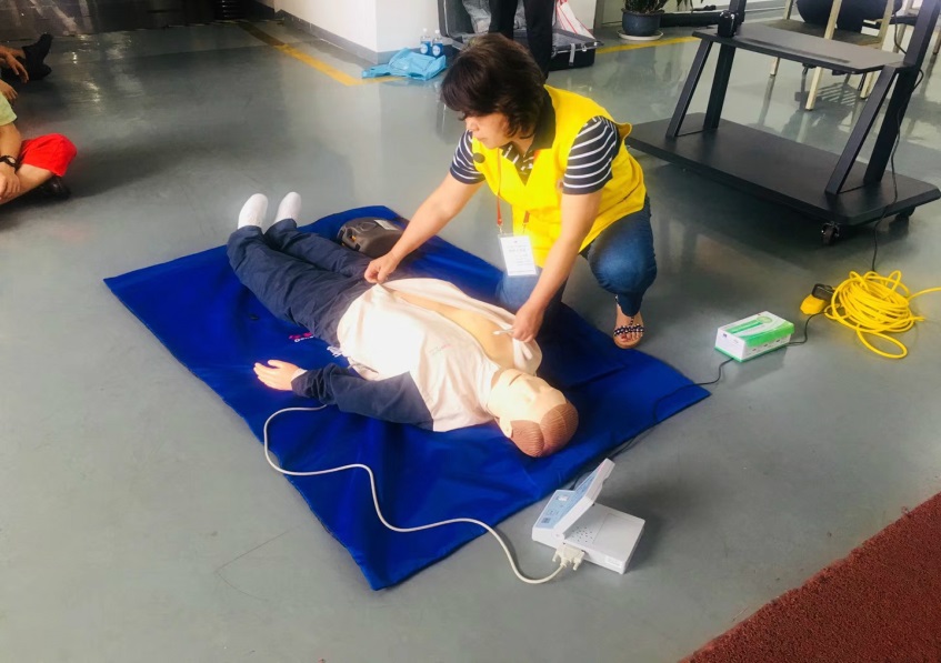 活动邀请了江湾街道红十字会刘若曼老师来讲解心肺复苏的知识。刘老师首先阐述了电击伤种类症状、现场救护知识及什么情况下需要进行CPR。然后刘老师演示了使用CPR现场救护的整个过程,并详细解读了规范的动作要领。最后邀请现场两位同学练习使用CPR救助的过程,学生在练习过程中刘老师为同学们纠正错误动作,说明了错误动作对被救助者的伤害,帮助同学们掌握心肺复苏动作要领,避免二次伤害。