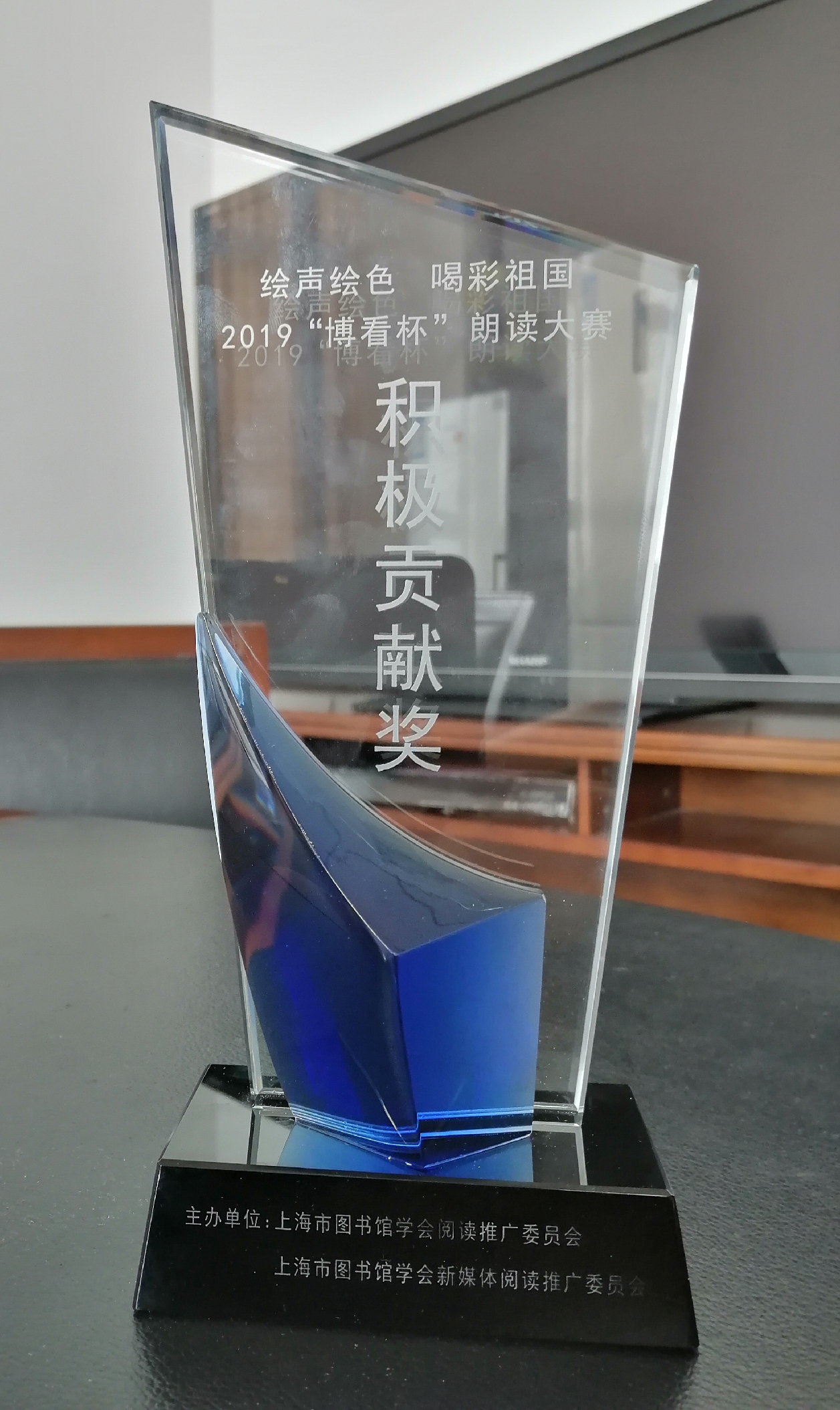 该大赛始于2019年4月中旬,历经校内海选、初赛、市级复赛、总决赛等阶段。我校图书馆通过官网、官微推送、馆内大屏幕、书友会推送以及海报等形式广为宣传、积极鼓动,广大师生踊跃参赛。通过在图文信息中心二楼大厅设置的朗读亭诵读,或者用自己手机微信操作朗读上传满意作品。在众多上佳作品中,图书馆推选出3名选手参加市级比赛,并做好比赛的拉拉队工作,选手获赞数名列前茅,最终获得大赛积极贡献奖。