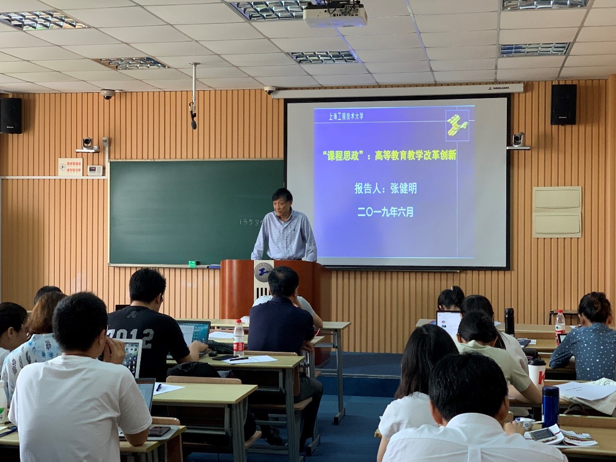 校本培训期间,原电子电气学院院长刘启中教授、社会科学学部张健明分别作了题为《思政元素有效融入专业课程的思考》、《课程思政:高等教育教学改革创新》的报告,鼓励教师对“课程思政”进行深入思考,并将“课程思政”有效地融入到专业课程中去。