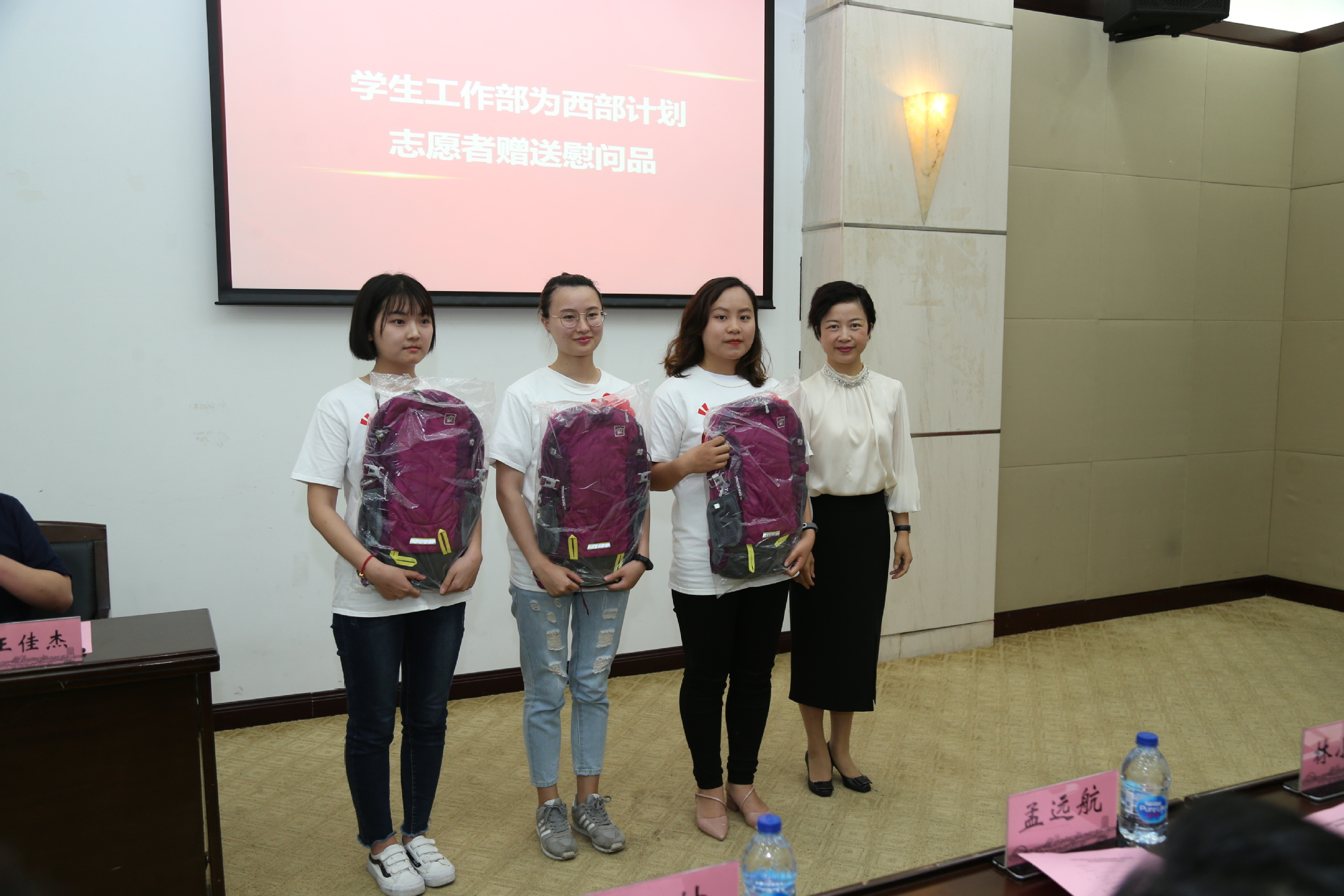 会前,党委副书记、副校长朱晓青在图文信息中心亲切慰问了学校三名西部计划志愿者,勉励她们要做好艰苦奋斗的思想准备,多深入基层和群众,虚心学习,勇于实践,展示工程大学子风采,书写青春梦想新篇章。