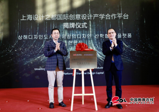 俞涛校长和上海设计之都促进中心理事长张展共同为“上海设计之都国际创意设计产学合作平台”揭牌。张展理事长表示,希望能充分发挥院校合作的各方优势,以上海设计之都国际创意设计产学合作平台为载体,助力国际创意设计学院建设,推进上海设计“走出去”和海外设计“引进来”,服务上海“设计之都”建设。