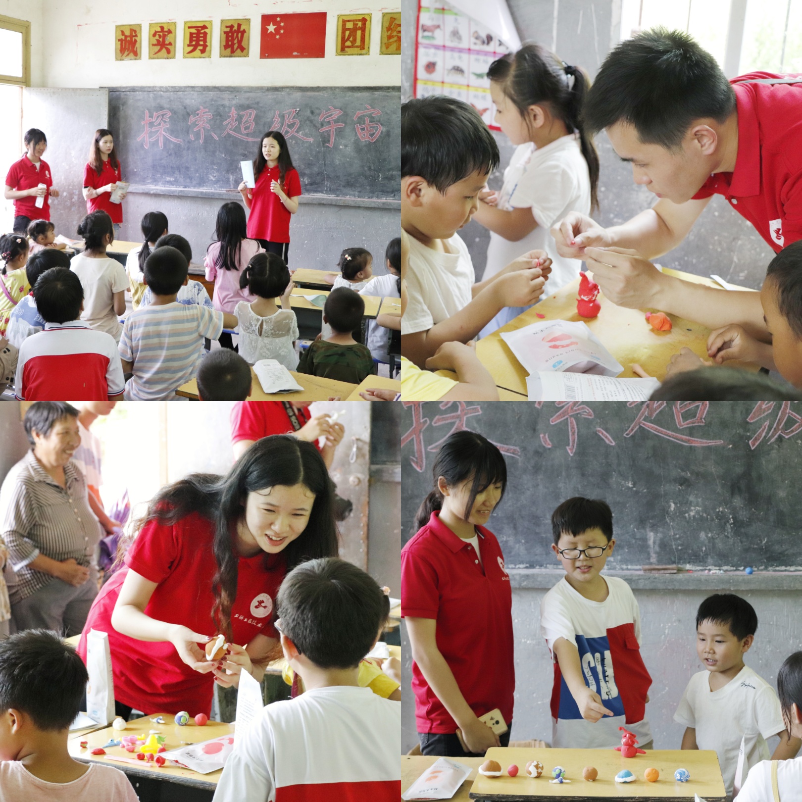 座谈会上,桃岭华敏希望小学校长许广富对上海工程技术大学团委师生表示了热烈欢迎,感谢工程大师生26年来的爱心接力,通过社会实践活动,为学生们送来知识,送来温暖。上海工程技术大学团委书记王佳杰指出,沪赣情,代代传,26年来,工程大500余名师生爱心接力,通过江西景德镇桃岭的社会实践活动,帮助开阔孩子们的视野,树立远大的奋斗目标;同时,校团委将充分发挥实践育人的作用,引领全校学生积极参与社会实践,在实践中受教育、长才干、做贡献,帮助大学生将仰望星空与脚踏实地相统一,切实提升实践育人成效。座谈会后,校团委书记王佳杰与桃岭华敏希望小学校长许广富共同为上海工程技术大学共青团社会实践基地揭牌,并代表学校向孩子们送上了“沪赣情”爱心科普书架和学习用品。同时,“沪赣情”两校结对共建26周年图片展,也在学校举行,二十多年来,一届又一届工程大人合力浇灌这片爱的土地的影像,将尘封的记忆从新唤醒。此外,大学生志愿者们也为小朋友们准备了丰富的素质拓展课程,带着孩子们一起通过游戏探索宇宙的秘密。
