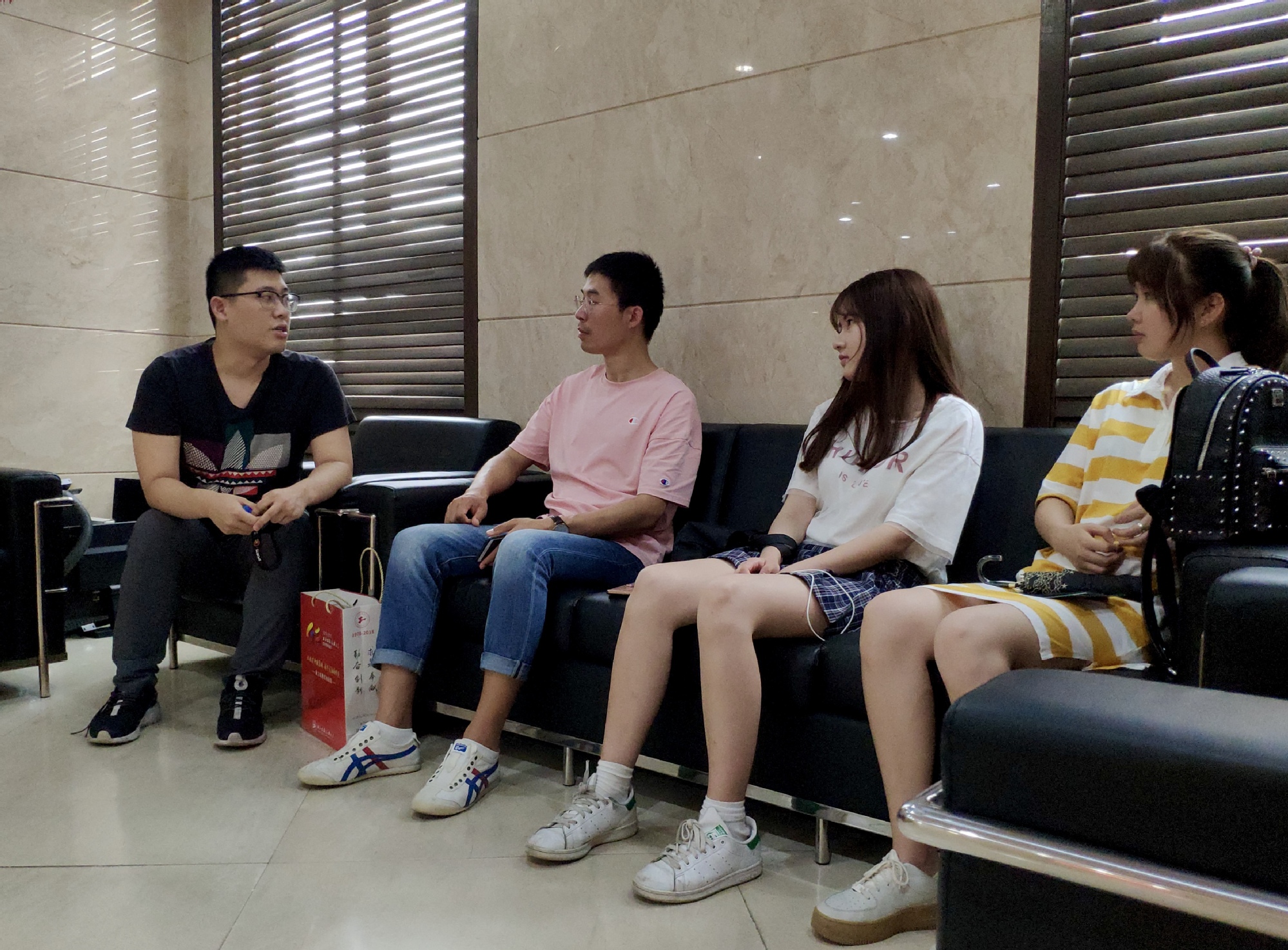 2019年6月28号中午,一个有些炎热的天气里,在国际经济与贸易专业辅导员白玉新老师的带领下管理学院校友寻访小记者团来到了东方航空期货有限责任公司采访了2017届校友工作联络员沈航,通过与校友的交流,小记者团受益良多。