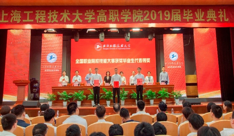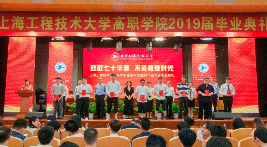 在毕业证书授予仪式中,553名毕业生从校领导手中接过鲜红的毕业证书,闪光灯将他们最美丽的笑容定格在了母校上海工程技术大学。