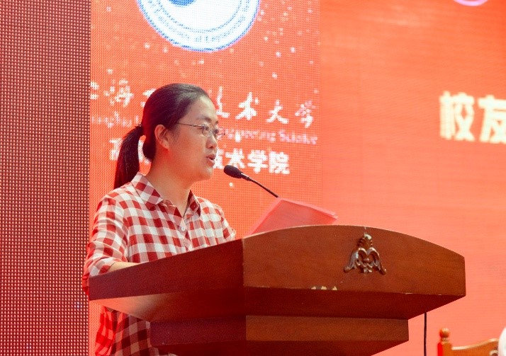 校学生工作部(处)长、研工部(处)长朱蓓宣读《上海工程技术大学关于聘请苗俭为我校客座教授的通知》,校党委副书记、副校长朱晓青为杰出校友苗俭颁发客座教授聘书。朱晓青书记、朱蓓部长、倪智勇书记一起为荣获全国职业院校技能大赛获奖毕业生代表颁发纪念品。