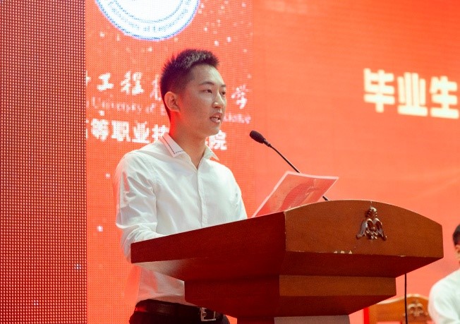 机电工程系茹秋生老师作为教师代表发言,希望同学们莫负青春、莫负已,脚踏实地,走好自己的路。2019届模具设计与制造专业刘建柱同学代表全体毕业生发言,表达了对老师和同学的不舍和对校园的留恋。