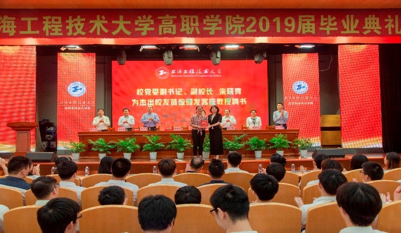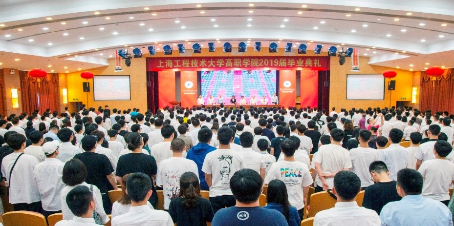 又是一年毕业季,青春逐梦启新程。7月4日上午,上海工程技术大学2019届高职学生毕业典礼在虹口校区师生活动中心涵憬堂举行。校党委副书记、副校长朱晓青,学生工作部(处)长、研工部(处)长朱蓓,高职学院全体党政领导,相关部门负责人、师生代表、毕业生辅导员、班主任导师、校友代表与2019届毕业生欢聚一堂,共同见证553名高职毕业生完成学业、开启人生新征程的美好时刻。毕业典礼由高职学院党委副书记、院长沈勤主持。