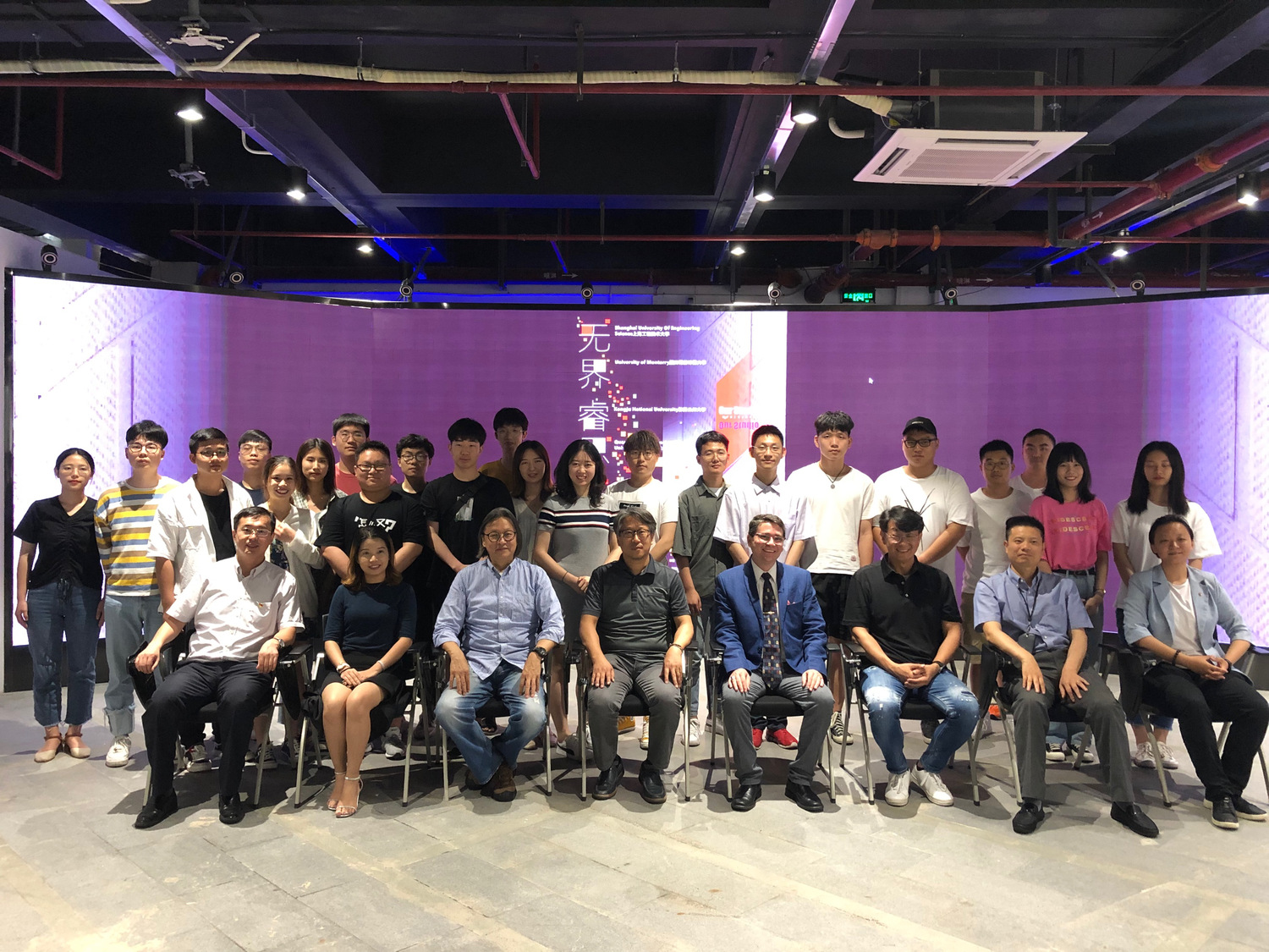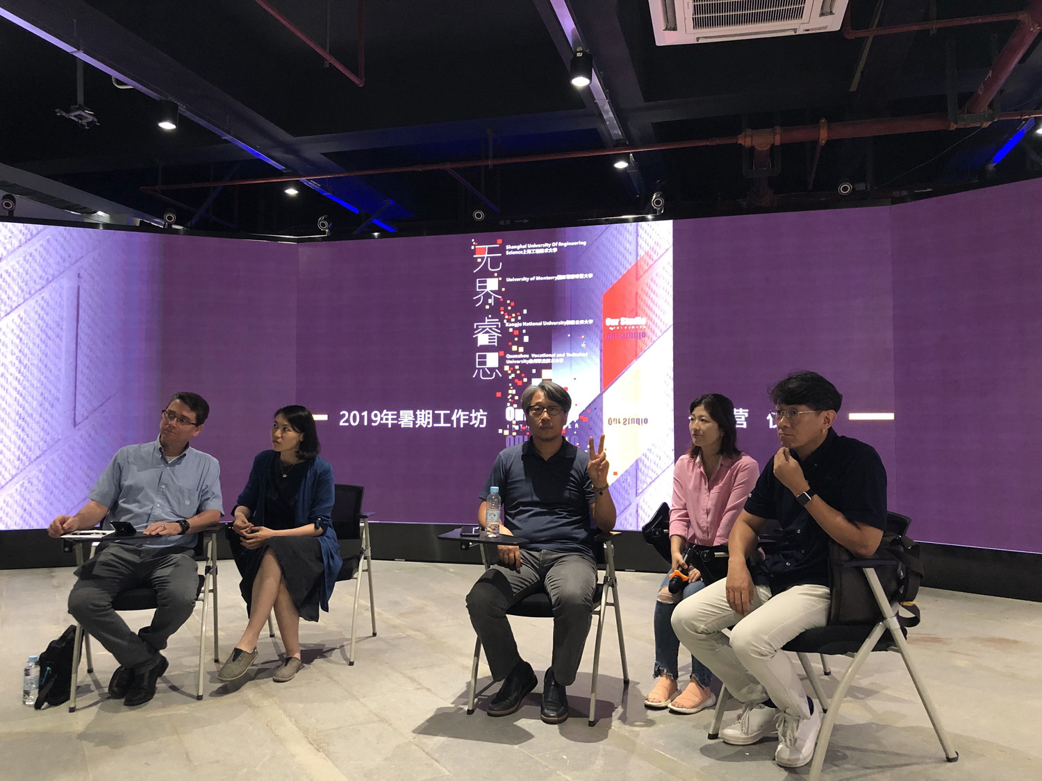 为响应学院致力于“艺工结合”数字媒体人才的培养和多媒体技术的研究创新,中韩多媒体设计学院于2019年7月1号下午15点虚拟现实教室举行了2019年暑期工作坊开营仪式,开营仪式的出席嘉宾有上海工程技术大学中韩多媒体设计学院吴亚生院长、顾艺副院长、韩国公州大学艺术大学副院长景炳杓教授、韩国公州大学游戏设计学科李东烈教授、墨西哥蒙特雷大学Carlos教授、泉州职业技术大学艺术传媒学院党委书记邓洁莹。