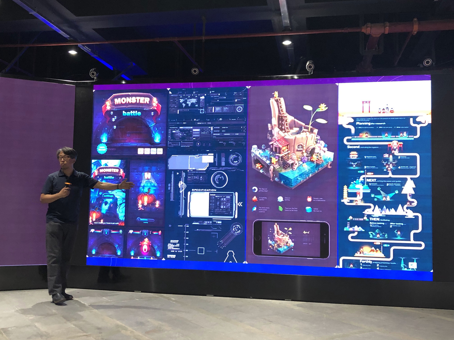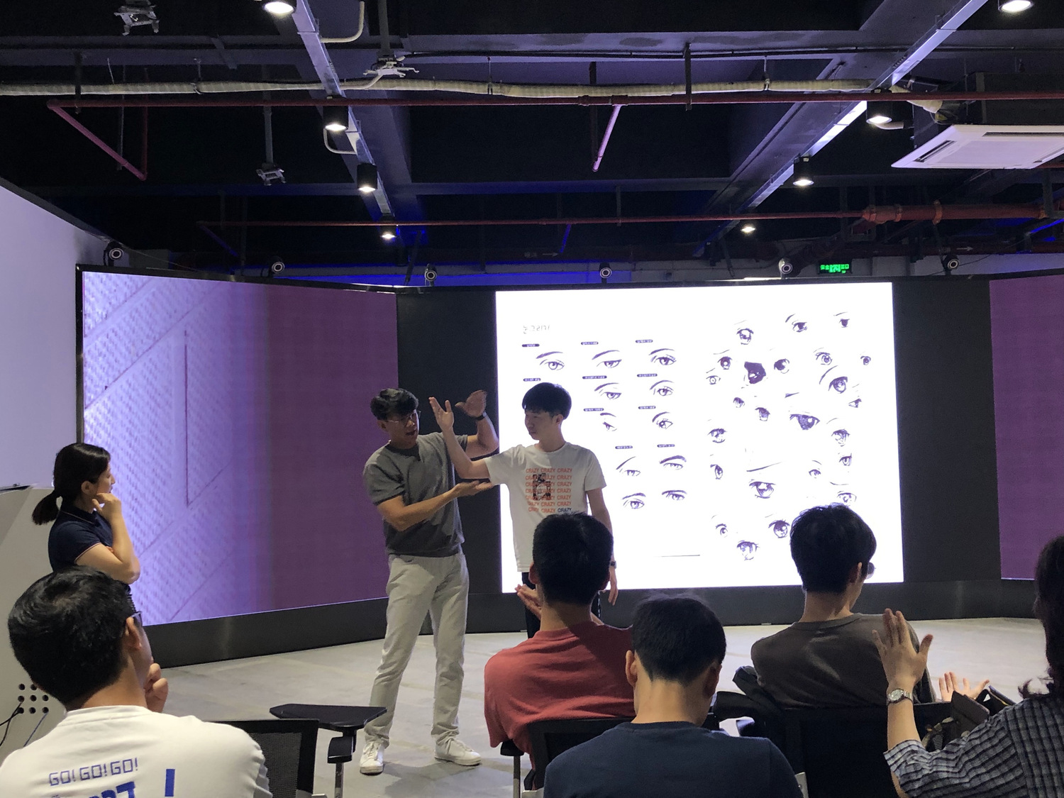 在接下来的四天工作坊活动中,第一天,海外名师墨西哥蒙特雷大学Carlos教授进行前期的课程导入,讲解了人机交互设计的设计流程,并且分组进行课程调研。第二天,韩国公州大学李东烈教授讲解了游戏中角色创作的思路以及对于人物比例的把控分析,游戏设计时候的用户心理学,观看了大量的优秀实例作品。第三天,韩国公州大学景炳杓教授讲解了游戏中的情报设计和UI\UX设计,随后根据分组,让学生构思一个游戏,并且进行游戏场景,角色,故事剧情的设计。