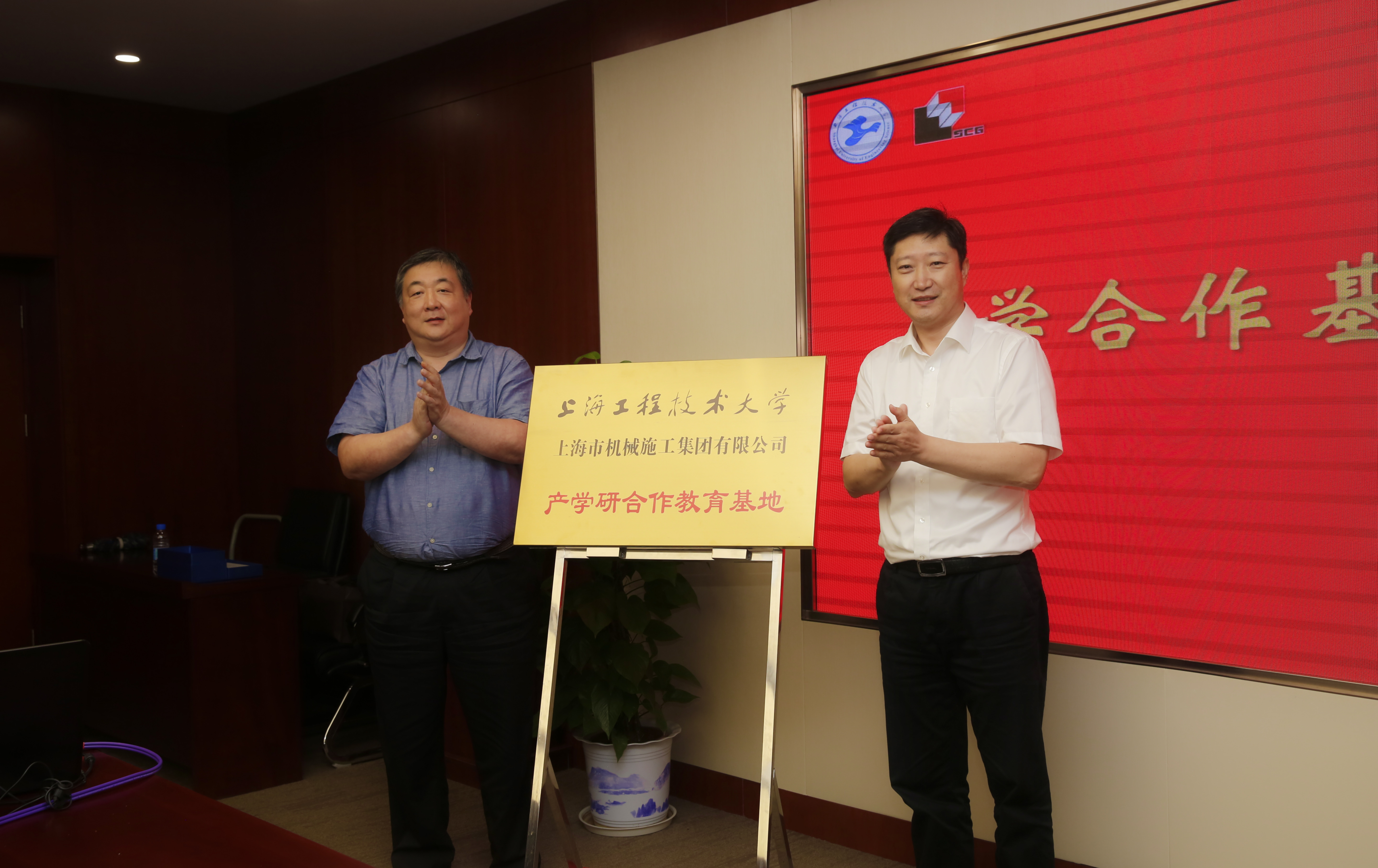 最后,校党委书记李江与机施集团党委书记、董事长李志宏共同为产学合作基地揭牌。