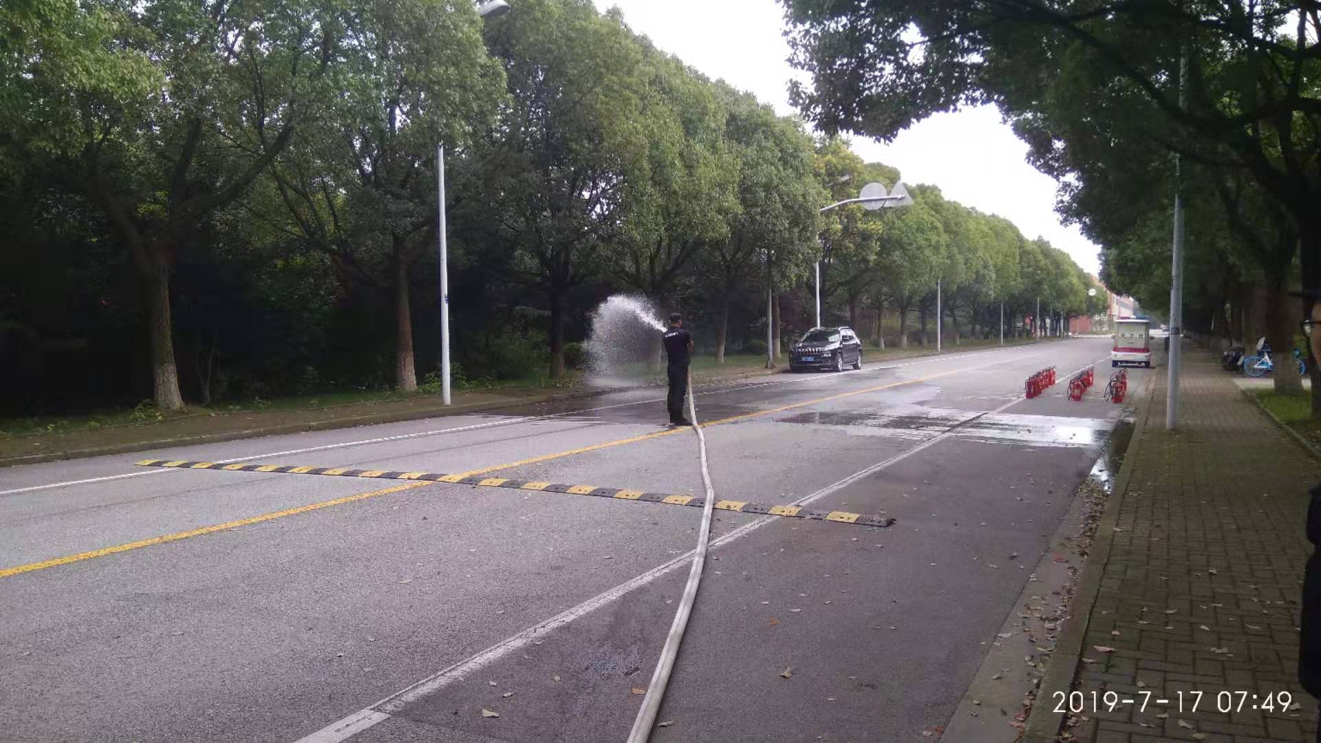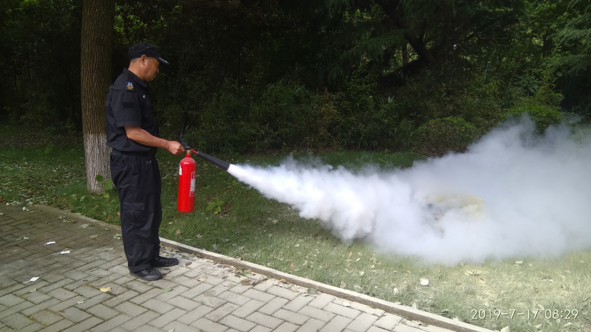 为积极响应上海市消防中队印发的《2019年多种形式消防队伍执勤岗位练兵活动实施意见》,同时为提高保安人员扑救初起火灾的能力,及时处置校园突发火情,7月17日上午,保安人员在保卫处组织下在松江校区腾飞西路及体育馆开展消防应急处置演练, 三十多名校园保安人员参加。