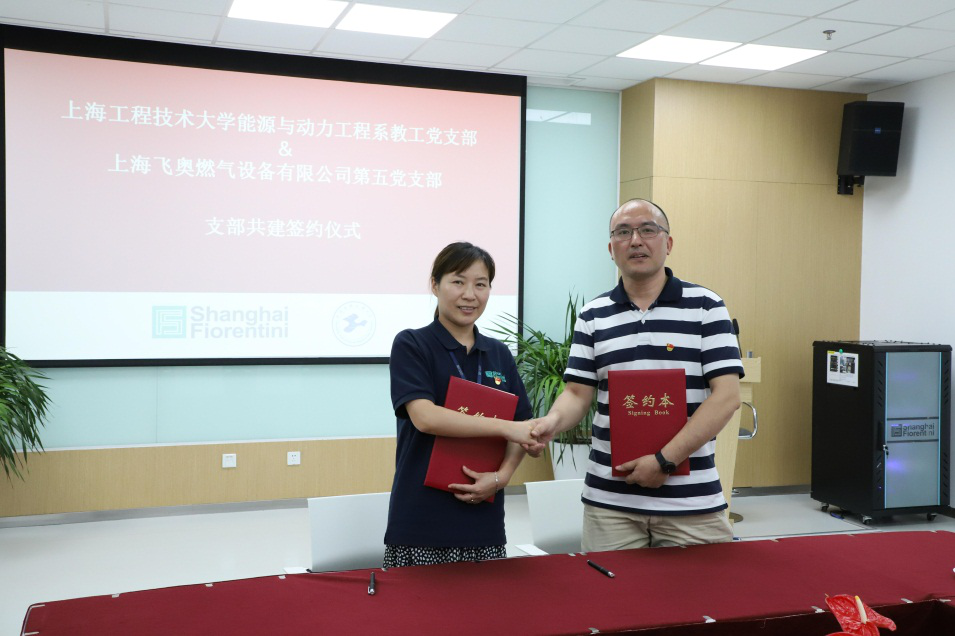 区域化党建共建促进校企合作。由上海飞奥燃气第五党支部和我校能源与动力工程系教工党支部进行了支部对接共建签约仪式。在签约之前,上海飞奥党总支副书记赵金菊介绍了上海飞奥燃气第五党支部的情况,我校机汽学院党委副书记王东阳为支部对接共建提了四点希望,希望支部共建能优化平台、优势互补、围绕中心、注重实效。上海飞奥第五党支部支部书记沈黎芳和我校能源与动力工程系教工党支部书记夏鹏分别详细介绍了各自支部情况,在双方领导的共同见证下,双方支部进行了支部共建签约。支部共建签约结束之后,曹晖总工、郭辉副院长等分别进行了交流发言。