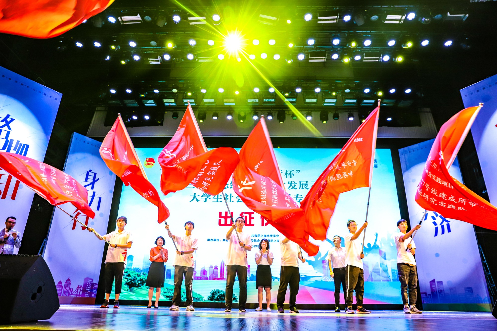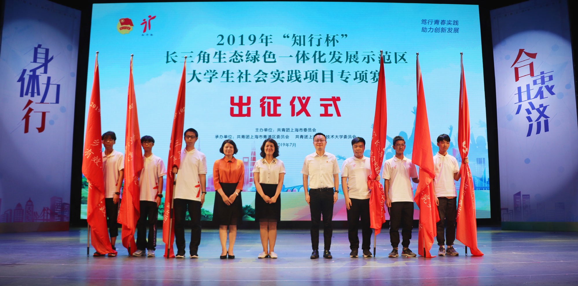 7月19日下午,由团上海市委主办,团上海市青浦区委、上海工程技术大学团委承办的2019年“知行杯”长三角生态绿色一体化发展示范区大学生社会实践项目专项赛出征仪式暨实践项目对接见面会在青浦区文化馆文化剧场举行。青浦区委副书记杨小菁,团市委副书记戴冰,上海工程技术大学党委副书记、副校长朱晓青出席仪式。出席仪式的还有青浦团区委主要领导和分管领导、吴江区、嘉善县团委书记、各实践项目相关单位分管领导和项目联络人、高校实践项目团队成员近400人。