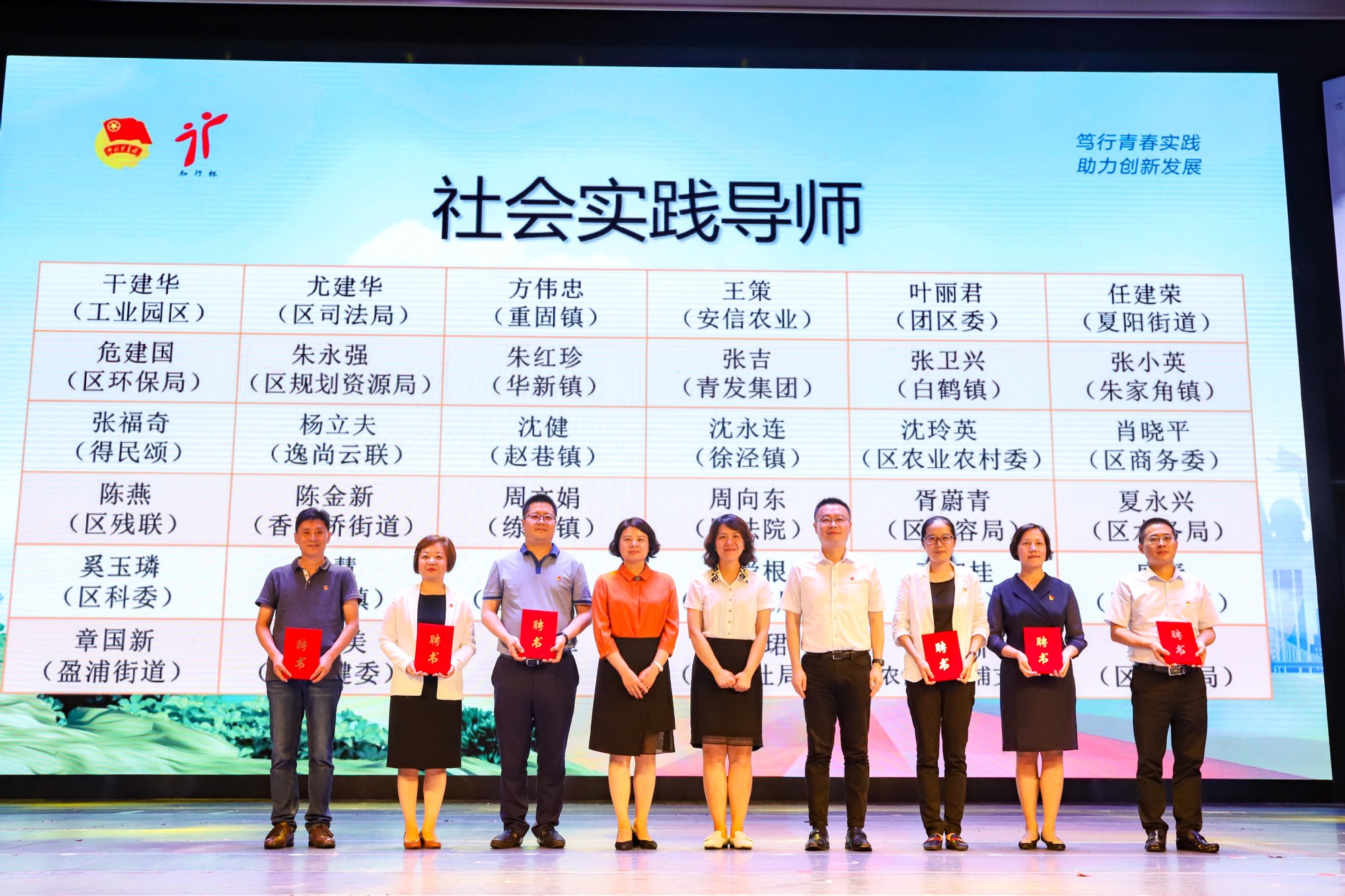 最后,与会领导向社会实践项目导师代表颁发聘书并向项目代表授旗出征。同学们信心满满、整装待发,会场内旗帜飘扬、气氛高涨。至此,2019年“知行杯”长三角生态绿色一体化发展示范区大学生社会实践项目专项赛正式拉开帷幕。