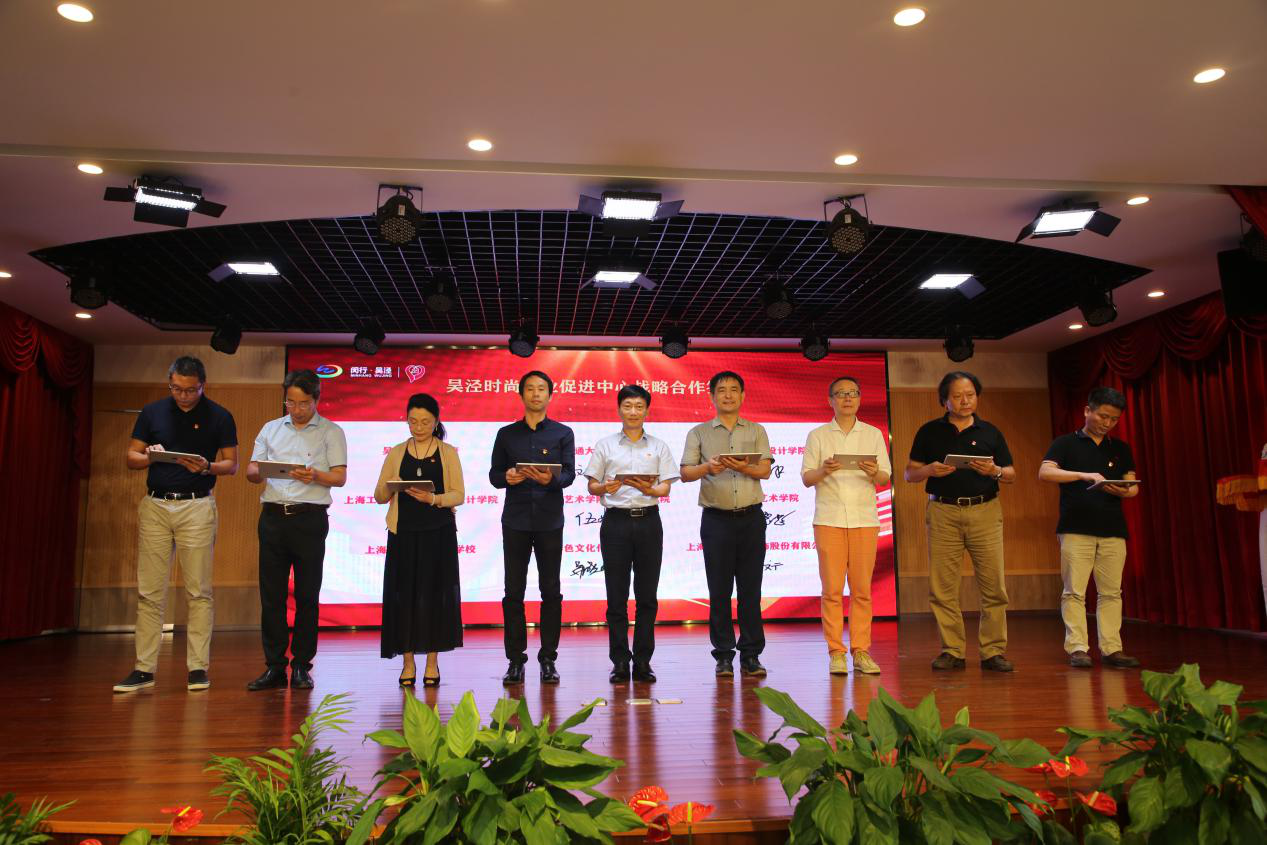 最后,成立于2016年的吴泾时尚产业促进中心,今天迎来新一批成员: 上海交通大学设计学院建筑系、华东师范大学设计学院、上海工程技术大学艺术设计学院、上海视觉艺术学院时尚设计学院、东海学院艺术学院、上海群益职业技术学校、上海春色文化传播有限公司、上海拉夏贝尔服饰股份有限公司,镇党委副书记沈军与成员单位签约。