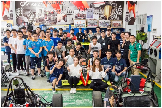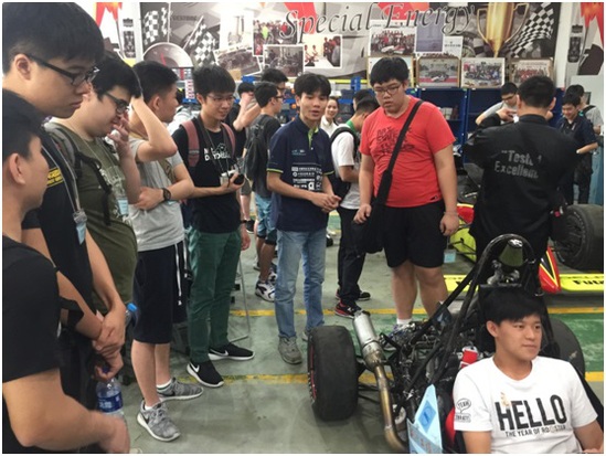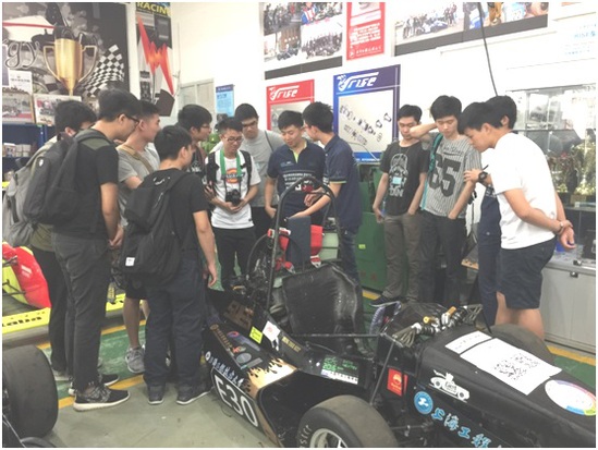 随后,香港专业教育学院的师生们前往汽车工程实训中心参观。虞抒叶老师精心组织了科普讲解团,车迷俱乐部社团,赛车队的同学们来介绍实验室的每个环节。通过学院讲解团团长毛瑞康、车迷社社长张缀华的讲解,令来访者对这些赛车展示出了极大地兴趣。随后,同学们前往造车工作室,由锐狮方程式赛车队队长钟灵翔与赛车手王咏臻介绍赛车队与赛事的情况。针对师生们介绍的情况,来自香港专业教育学院的师生纷纷发表自己的看法,并展开激烈的讨论,互相展开了技术交流,队员们详细解答问题,并邀请香港同学试乘赛车,同学和老师都很佩服队员们的工程能力。最后,香港专业教育学院的学生发表了参观和交流感言,表示到上海工程技术大学汽车工程学院的交流学习让他们增长了见识,并对汽车工程专业有了更清晰的认识。