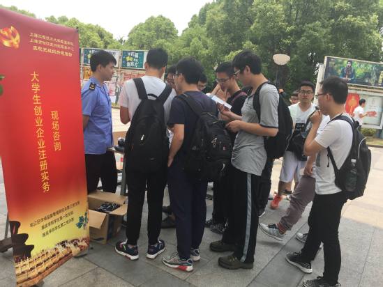 自2014年服装学院学生党支部与松江行政服务中心结对以来,在服装学院党委的领导下,学生党支部每年定期不定期的开展志愿服务活动、第三方监督工作等各种共建活动。此次活动围绕大学生创业相关内容开展。活动现场设有咨询服务台,由松江区市场监督管理局机关第三支部进行现场答疑。具体答疑内容包括创业具体办理流程相关事宜及申请公司登记或备案相关材料准备等。活动现场人头攒动,有志于创业的大学生积极走到咨询台前,就创业相关问题进行咨询。松江区市场监督管理局机关第三支部的余科长说:通过这次的咨询会了解到大学生创业热情很高,但想法还不够成熟,所以需要培养较为完善的创业意识!”