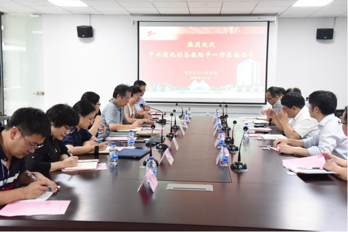 9月2日,中兴通讯副总裁陆平一行来到电子电气工程学院交流产学研合作事宜,电气学院党委书记段海霞、党委副书记熊筱晶、副院长刘瑾,人工智能产业研究院常务副院长王国中、副院长杨淑群,学院及研究院相关教师出席。会议由副院长刘瑾主持。