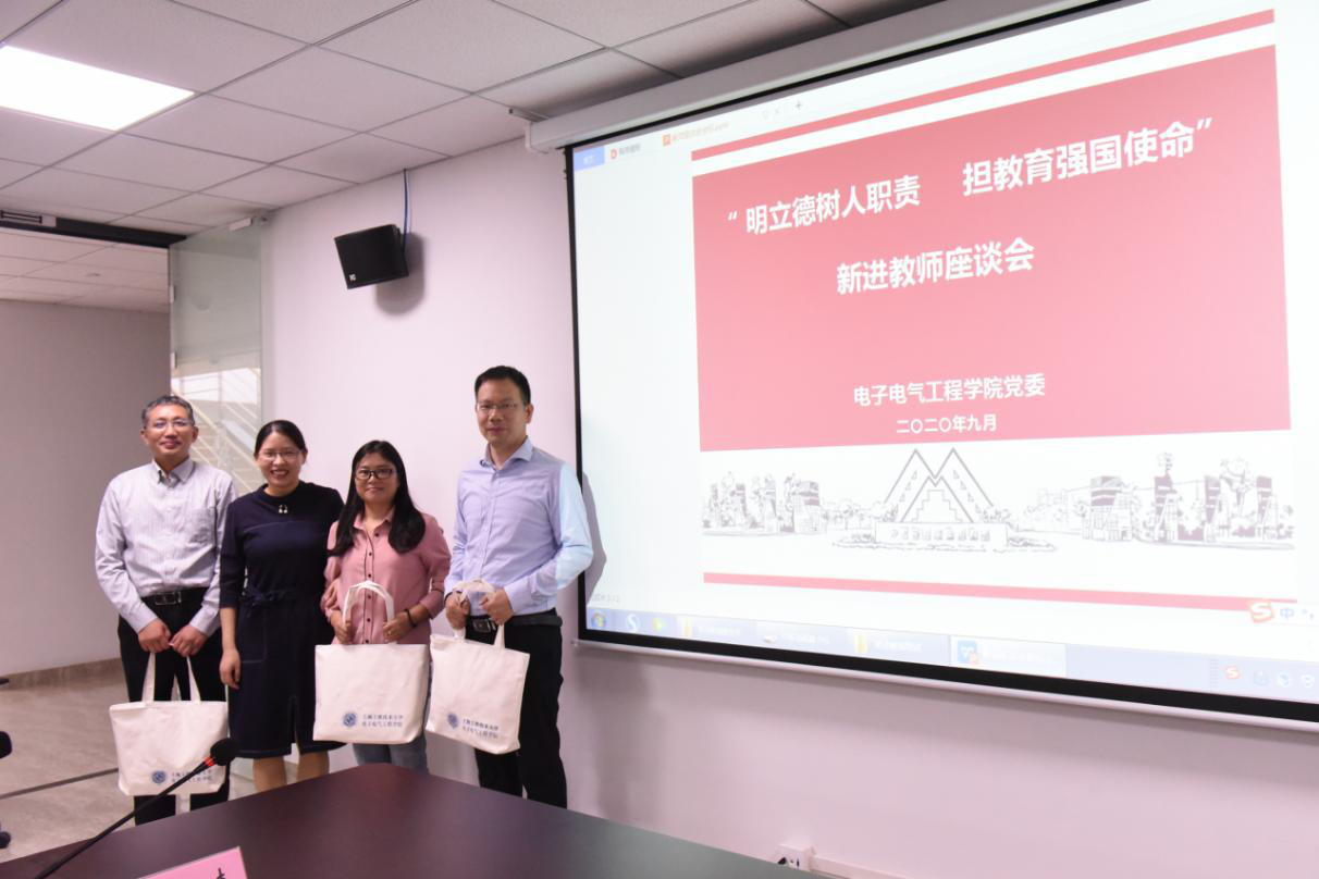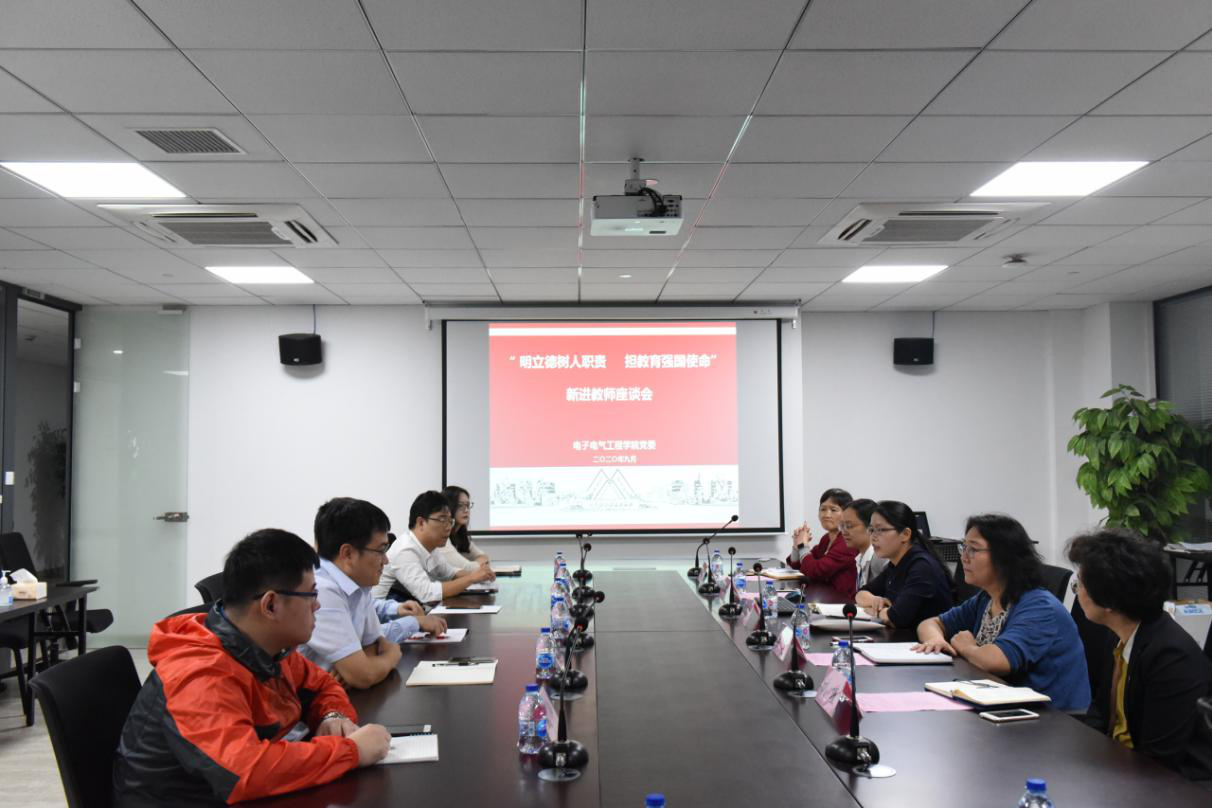 为促进新进教师尽快融入学院,深入开展全国党建标杆院系创建“使命践行工程”——教师成长青蓝计划,结合四史学习教育,电子电气工程学院于9月18日上午在交通中心7950召开“明立德树人职责 担教育强国使命”2020年新进教师座谈会。座谈会由学院党委书记段海霞主持,副书记熊筱晶、副院长刘瑾、信息办副主任余粟、带教导师代表游晓明、2020年新入职全体教师参加会议。