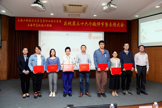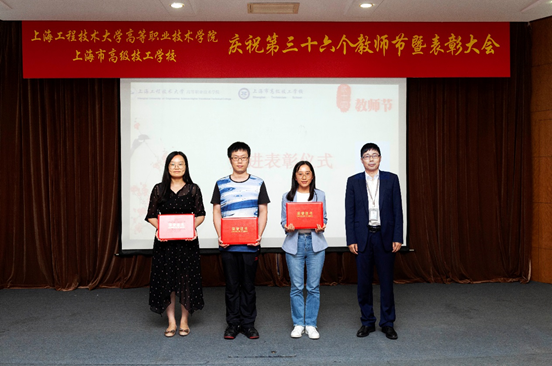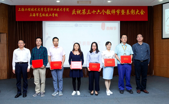 党委书记倪智勇老师、党委副书记、院校长沈勤老师为优秀教师颁奖
