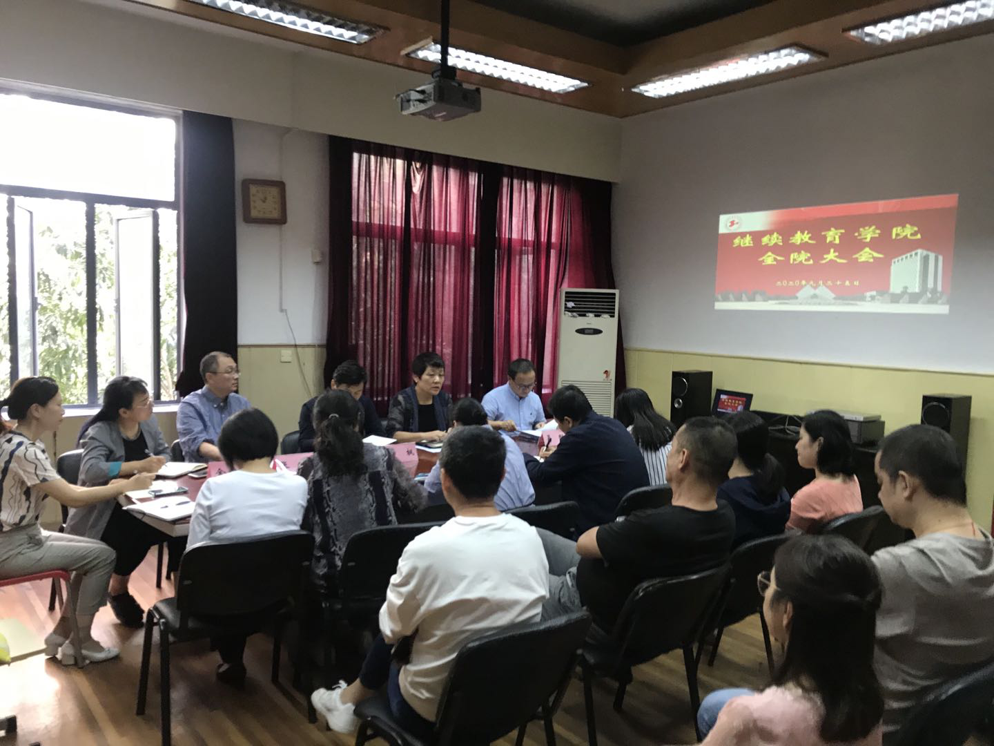 9月25日下午,继续教育学院在长宁校区教学楼222会议室召开新学期全院大会。学院党政领导班子及全体教职工参加会议,会议由院长谢敏主持。