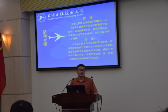 由研究生处、研究生部主办,研究生会(学术部)承办的第五届上海工程技术大学研究生“学术之星”评选活动决赛于7月4日下午在图文信息中心第三报告厅举行。研究生处副处长张莉萍、严运楼,相关学院副院长、老师,研究生处王成涛以及研工部黄中子出席了本次大赛。