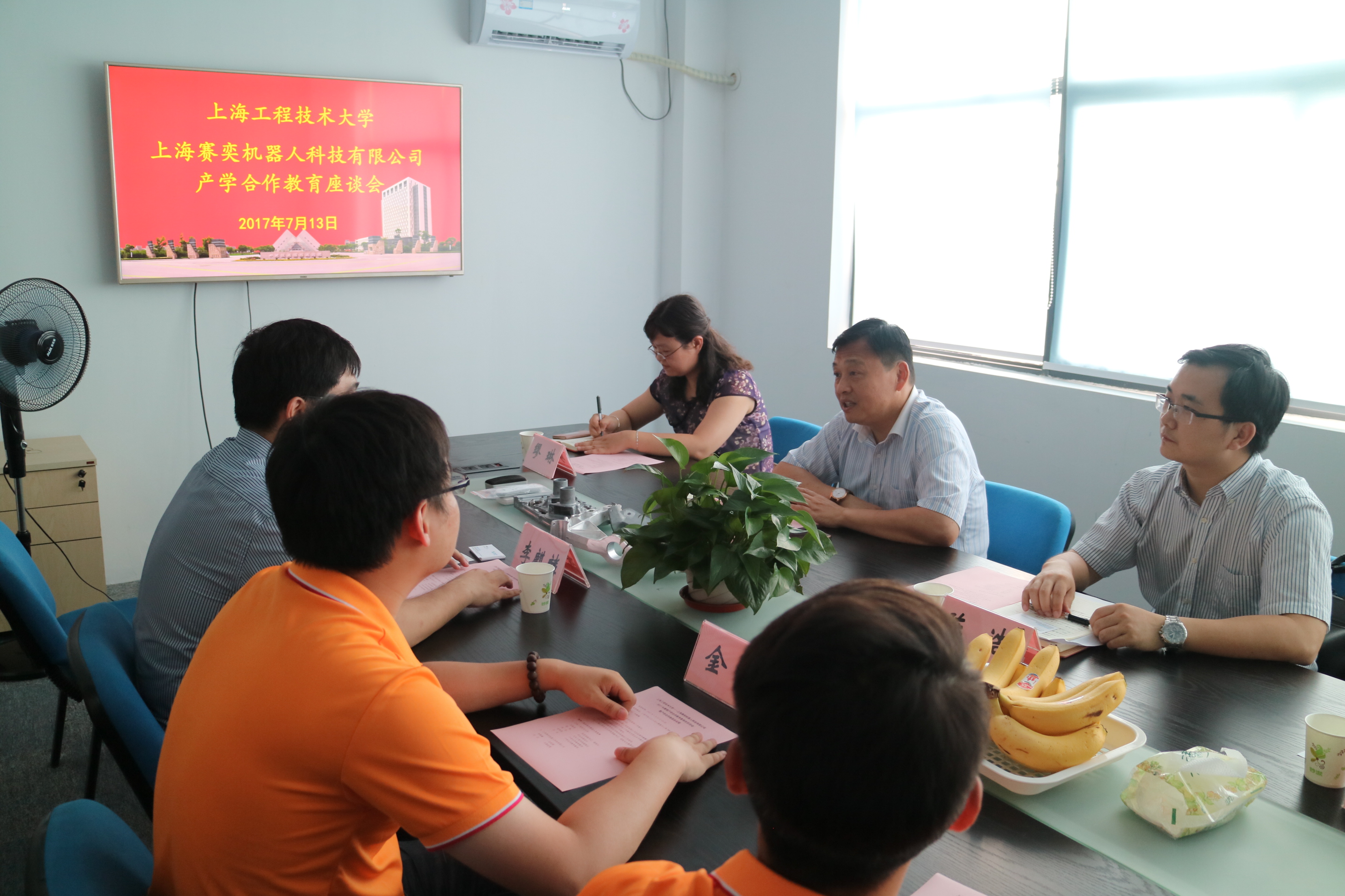 在上海赛奕机器人有限公司,公司总经理李麒麟陪同史健勇副书记一行参观了学生工作的场所,介绍了公司的生产车房。校党委副书记、副校长史健勇对公司的企业文化、生产理念表示赞赏。随后双方进行校企合作座谈会,校党委副书记、副校长史健勇对公司给予学校产学合作教育及就业工作的大力支持表示感谢,表达了以后校企双方在产学研、大学生创新创业、学科竞赛等各方面展开多领域、多方位深入合作的期望。他提到民营企业在中国制造业中发挥了巨大的作用,鼓励同学们珍惜在此实习的“天时、地利、人和”机会,希望同学们能虚心学习,努力工作,为进入社会夯实基础。公司总经理李麒麟介绍了公司的基本情况、产学合作教育学生工作情况及校企合作情况。校友代表2005级学生金洁向母校汇报了几年的工作成果和心得,分享了自己在企业成长的点滴,感谢母校的培养,感谢企业的指导,也感谢学校领导的关心。产学合作学生代表机械设计及其自动化(中美合作)专业学生郑在源谈了自己的实习感受,他表示会珍惜校企合作为自己带来的宝贵机会,不辜负学校领导和老师的期望,在实践中学习、进步。产学合作实习生们也纷纷表示他们会踏实做事,充分展现工程大人的良好精神风貌和履行社会责任担当。