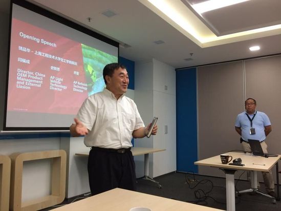 中国OEM产品经理闫福成博士,首先表示自己与工程大有着良好的合作关系,目前他担任中国涂料工业大学培训班的导师。他强调艾仕得研发中心是涂料企业的核心部门首次向高校开放,招收实习生。希望工程大高分子系的同学们能够珍惜这次实习机会,在接下来的4个多月期间,努力工作,应用自己的理论知识于实践中。并且强调涂料科学是一门试错的实践科学,要求同学们敢于问问题,从实践中不断积累经验。