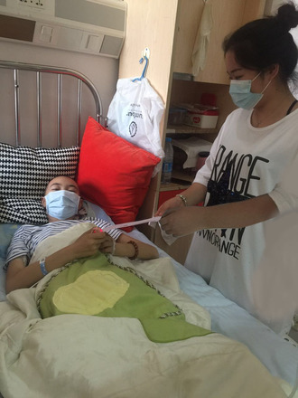 中法学院团委副书记王家雯同学为白血病患儿送清凉做护理