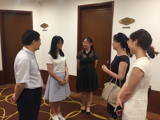 炎炎夏日战高温,浓浓情意送清凉。面对入夏以来的持续高温,怀着对学生的关爱之情,7月24日上午,数理外国语联合党总支书记王勤、学办主任李雪苗走访了学院产学合作单位—上海外服(集团)有限公司,并看望产学合作教学学生。集团国际人才培训中心主任陈养铃、翻译中心经理王佳等公司主要领导热情接待了来访。