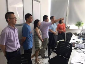 下午,我方一行又来到浦东三里桥数字产业园区,参观上海高清数字科技有限公司,戴扬总裁、王峰副总裁,分别对公司的现况和发展做了详细的介绍,接着带领方院长一行对研发中心、工程中心等各个部门进行了参观并展示了公司的一系列研发成果,尤其是全息3D视音频工作室给大家留下了深刻的印象。然后方院长提出希望在本科生、研究生培养及实习、联合开展研究等多方面进行深入的合作,从而进一步为广播电视工程专业的应用型本科建设打下坚实的基础,双方就此展开了热切的交流,并提出了一系列合作的方案。