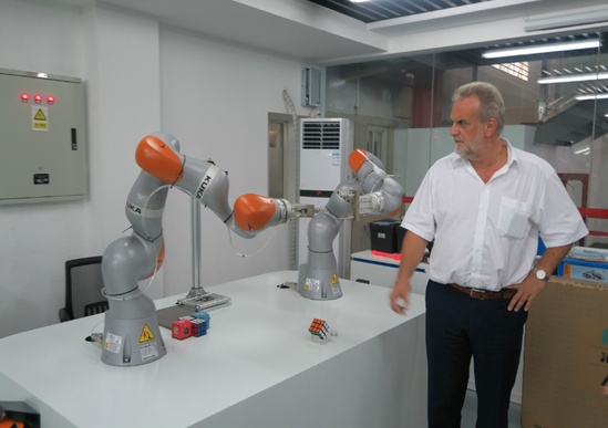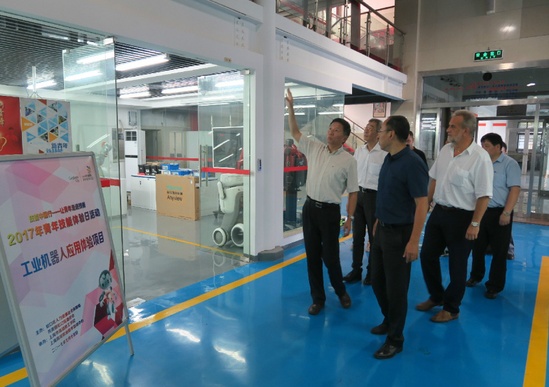 在学院院长胡宁以及院办主任梁端银、机电工程系主任杨洋等的陪同下,西门子(中国)有限公司数字化工厂集团领导一行参观了校园内的“上海市机器人技术开放实训中心”及“上海市工业控制项目世界技能大赛集训基地”。