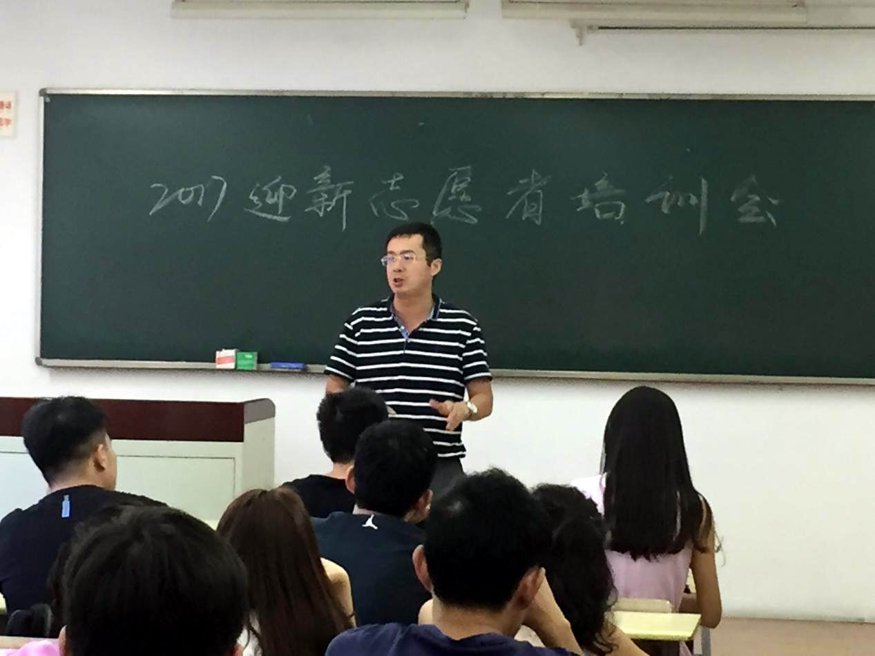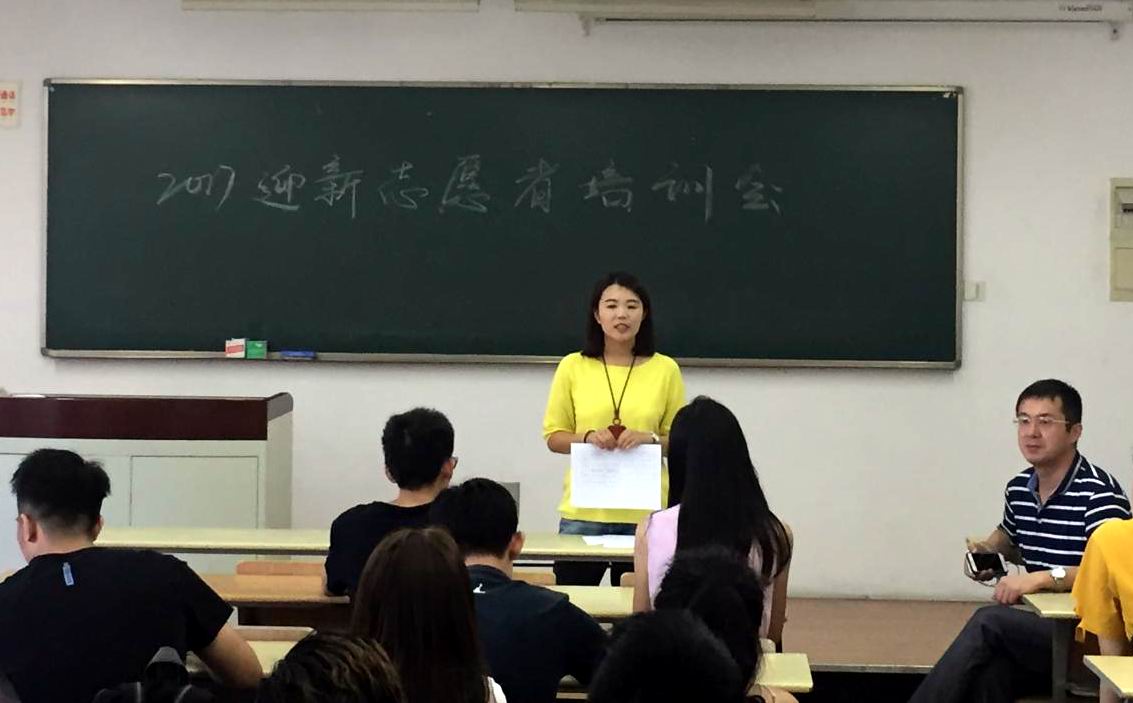 9月13日, 2017级新生报到前夕,汽车工程学院学生工作办公室在教学楼B102开展志愿者培训会,此次培训会由学院学生工作办公室任倩琳主持,学院党委副书记马建立莅临现场并总结讲话,学院专职辅导员苏鹏源、驻楼辅导员肖文文、姚译然出席,40多名志愿者参与培训会。