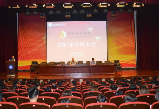 在新学期伊始,为使学院全体学生快速进入学习状态,创建良好的学习氛围,9月12日下午,社会科学学院2017年度学风大会在志宏堂召开。参加的学院领导和老师有社会科学学院党总支书记曹开云、社会科学学院教授张健明、社会科学学院党总支副书记程玉莲。社会科学学院大二、大三、大四全体学生,全体辅导员老师。大会由程玉莲老师主持。