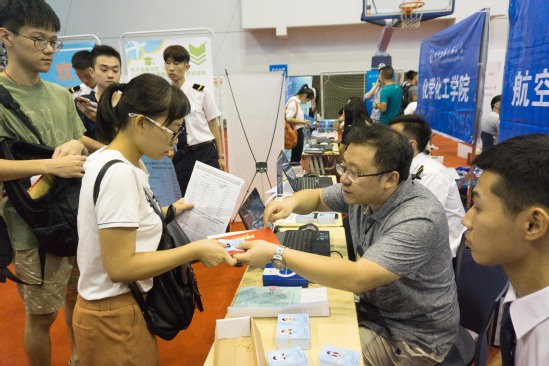 在学院设立的新生接待处,迎新师生们为新生们提供着人性化的服务。飞行“小班”们统一的着装成为学院一道靓丽的风景。对于“小班”们来说,指路向导、行李搬运、疑问解答等都是份内的工作,每个人虽然疲惫却始终保持着最真诚的微笑。