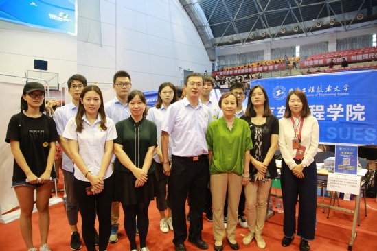 学院领导也来到报到现场,慰问现场的师生,对他们的辛勤付出表示感谢和肯定。迎新工作如火如荼,到处都是忙碌的身影,有引导新生进行注册领取校园卡的同学,有分发报到流程和工程大新生礼包的同学,每个人都不厌其烦地向新生解答他们遇到的问题,人头攒动,秩序井然。汽车工程学院今年的一大亮点就是“汽车人”,刚来到学院的新生都纷纷和它进行合照。