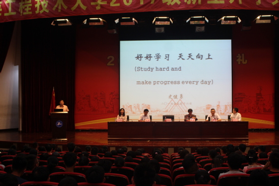 校党委副书记、副校长兼管理学院院长史健勇代表学院向2017级新生表示热烈欢迎和祝贺。他以简洁凝练而又富有内涵的“好好学习、天天向上”为主题,向新生娓娓道来大学生为何而学以及该如何学。他结合个人成长经历,指出学习当“为父母、为自己、为集体、为国家”,号召青年学子要树立目标、志向和梦想,就如同我校图书馆前的文化雕塑所蕴含的特质那样,伫立广场上很渺小,但心胸要广大,面向世界。他对新生提出要做有文化的青年的要求,并结合“人”字的意义要求学生以德为先,做德智体全面发展的学生:健康体魄是基础,每天要锻炼一小时;优良品德是决定要素,决定一个人是否可用;聪明才智则影响一个人可用的程度。校党委副书记、副校长兼管理学院院长史健勇以校训为纲,向新生指明好好学习要以勤奋为基础、以求是为目标、以创新为本质、以奉献为真谛,希望学生加强学习、学会学习、学以立德、学以致用,在成就中华民族伟大复兴的同时,实现自己的人生目标!