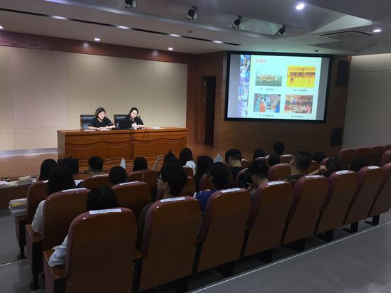 首先,中法学院学生会主席沈晓慧同学向2017级新生介绍了中法学院团委学生会的部门构成,以及工作情况。中法学院分团委学生会各部门学生干部们在暑期都做好了充足的准备,沈晓慧同学新生们一一介绍了各个部门的职能、招募要求以及活动开展情况,并下发了招募表,鼓励新生积极参加到中法学院分团委学生会的大集体中。在场新生听得聚精会神,跃跃欲试。中法学院分团委副书记王家雯同学,向同学们介绍了中法学院团委的“专业社团”,将各类专业社团介绍给新生,期望有兴趣的同学们都能积极参与到专业社团的实践活动中,不断提高自身的专业实践能力。
