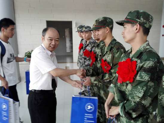 同学们用标准的军礼回敬与感谢学院领导与老师们的关心慰问,纷纷表示将以自己在部队中的优秀表现回报师长,用航院学子惯有的务实、勤奋的优良作风来诠释“投身国防,守卫和平,有我!”的爱国情怀。