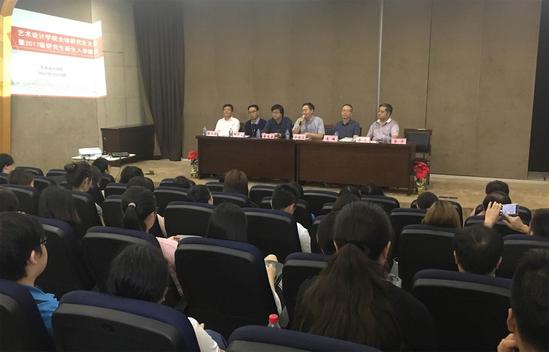 首先,党总支书记许传宏教授致开幕辞,他代表学院全体师生表达了对2017级研究生新生的热烈欢迎。同时他对新生的生活、工作、科研等方面提出了几点要求并寄予殷切期望,“同学们,你们就是艺术设计学院!艺术设计学院的身份塑造,取决于你们的自我塑造。你们今日与未来的创造,就是艺设的未来与创造”,许书记说到。希望同学们能把握研究生阶段的黄金时期,树立远大理想,勤奋学习,开拓创新,成就一番属于自己的辉煌成绩。