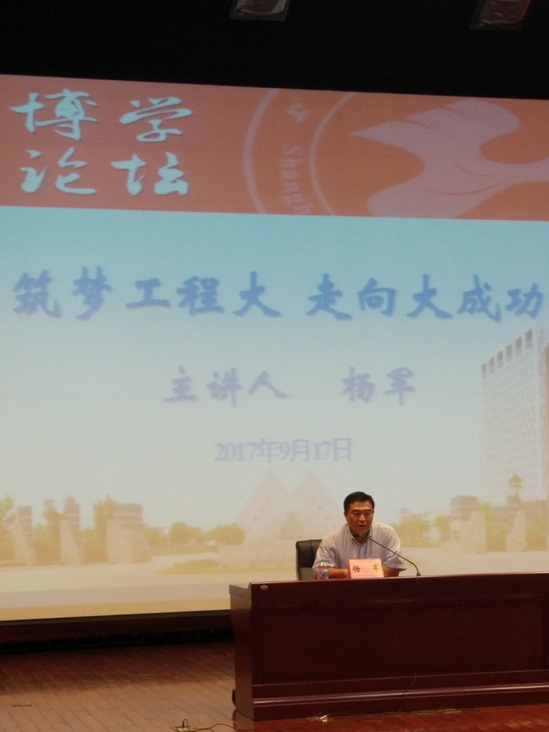 杨军校友从求学经历、工作经历、人生感悟和新生寄语等给在座的新生们带来了一场生动的讲座。结合自己丰富的经历,杨军校友给在座的新生们提出了四点建议和希望:一、学习为主,研究为主。学习是大学生的首要任务,大学阶段关键要学会自主学习。二、多动手,多实践。知识来源于实践,能力来源于实践,素质更要在实践中不断提高。在大学期间,在学好理论的同时,积极参加动手实践,有效培养和提升实践能力和创新精神。三、培养自己广泛的兴趣。相对来说,大学的时间比较宽裕,利用好零散的时间提升自我、培养个人的兴趣爱好,对今后的工作和生活都有很大的好处。四、合理规划大学生活。希望同学们尽快融入大学生活,调整生活、学习状态,尽快找到自己的发展目标,提高品德修养,完善自身品格。最后,杨军校友以“正当青春年华,理想就在前方”为结束语勉励所有同学充实过好大学的每一天,将知识转换成能力,为提高自己的理论与实践能力不断努力!