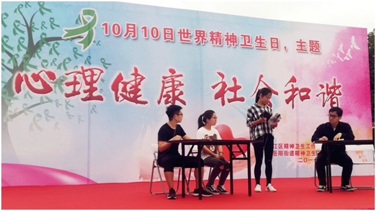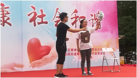 9月27日上午,我校心理辅导中心、电子电气工程学院心理朋辈分站受邀参加了松江区精神卫生中心举办的主题为“心理健康,社会和谐”的2017年世界精神卫生日公益活动,电气学院朋辈互助分站同学进行了心理剧的公益演出。