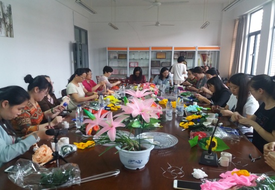 本次活动我们的女教师用女性的心灵手巧手工diy各种花卉,创新制作了鲜艳夺目、绚丽多彩的牡丹、玫瑰、百合、太阳花等多种花卉,活动充分展示了女教师的智慧和创新创美的能力,美丽的花朵将扮靓程园、献礼国庆、寄语中秋团圆佳节。