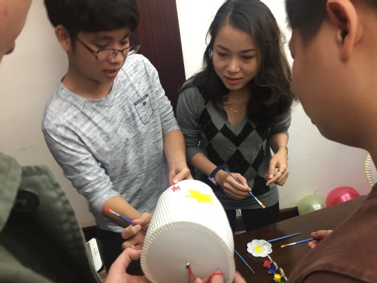 随后,各位留学生、港澳台同学们还互相作了自我介绍,来自不同国家和地区的同学们表示很开心认识彼此并且希望能拥有更多的朋友,并表达了对学院的感谢及中秋祝福之情。随后同学们还切身体会了中秋节的传统习俗“画花灯”。同学们在花灯上画下了美丽的自然风景,祝福家人朋友和老师们幸福快乐。交流会上,同学们还在学院发放的纪念明信片,写上了对家人的祝福,而这些明信片学院也将会代同学们寄往留学生和港澳台同学们的家乡。
