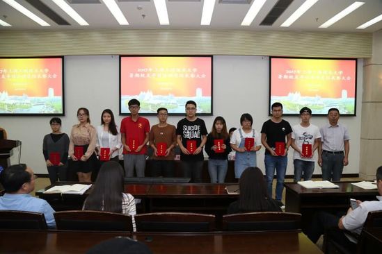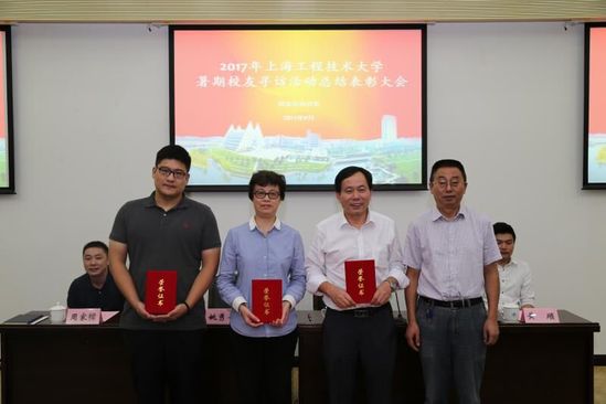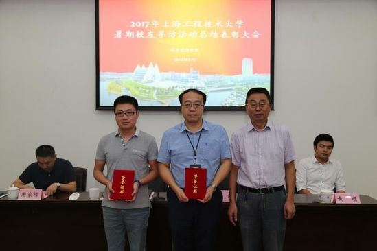 校友会办公室副主任周家樑做了2017年暑期校友寻访活动总结报告,电子电气工程学院、管理学院荣获优秀组织单位,管理学院周洁、材料工程学院周细应、中法埃菲时装设计师学院陈寅珕被评为优秀寻访教师,大会还表彰了十支优秀寻访团队及二十名优秀寻访个人。中法埃菲时装设计师学院辅导员陈寅珕、管理学院优秀寻访团队代表进行交流发言。