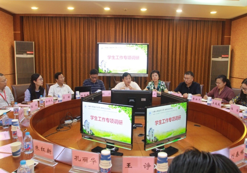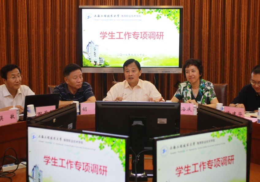 秋季桂花香飘万里,国庆中秋喜迎佳节,9月30日上午,校党委副书记、副校长史健勇一行莅临上海工程技术大学高职学院指导在国庆、中秋双节到来之际,奋战在学生工作一线的教师们。上午九时,学生工作专项调研会准时举行,参加本次调研会的成员包括:高职学院党委书记沈海庆,高职学院党委副书记、院长胡宁,校研究生工作部副部长徐建华,学院党委副书记田盈耕、李云先,以及院学生科、分团委、各系支部书记、全体辅导员。本次研讨会由沈海庆书记主持。
