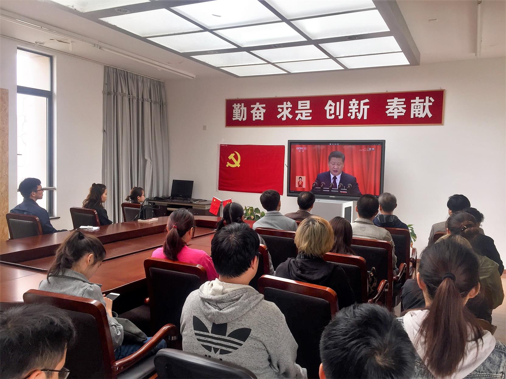 中国共产党第十九次全国代表大会于10月18日上午9时在北京人民大会堂隆重开幕。按照校党委的要求,学院党总支精心部署,认真组织学院全体师生党员集中收看了本次大会开幕会现场直播的盛况。开幕会后,各支部迅速开展了学习讨论。